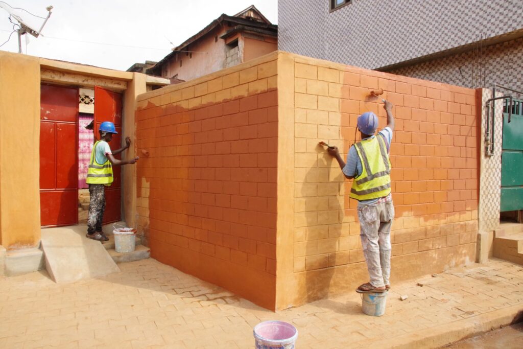 Après plusieurs semaines de travaux intensifs consacrés à la rénovation et à la mise en valeur de la place vodun Déguè, la deuxième phase du projet entre dans une étape décisive avec l’intervention des maîtres peintres. Leur mission : procéder au badigeon de l’ensemble des murs réhabilités afin d’offrir à la place une nouvelle identité visuelle.